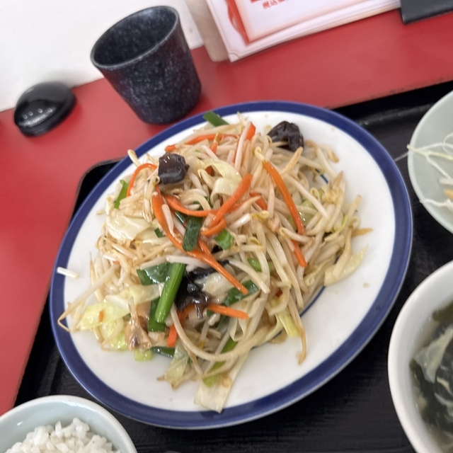 この日の日替わりは、回鍋肉、ニラ玉炒め、唐揚、野菜炒めの4種類でした。